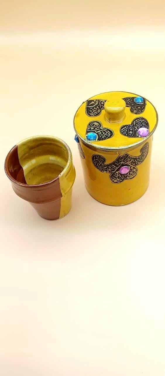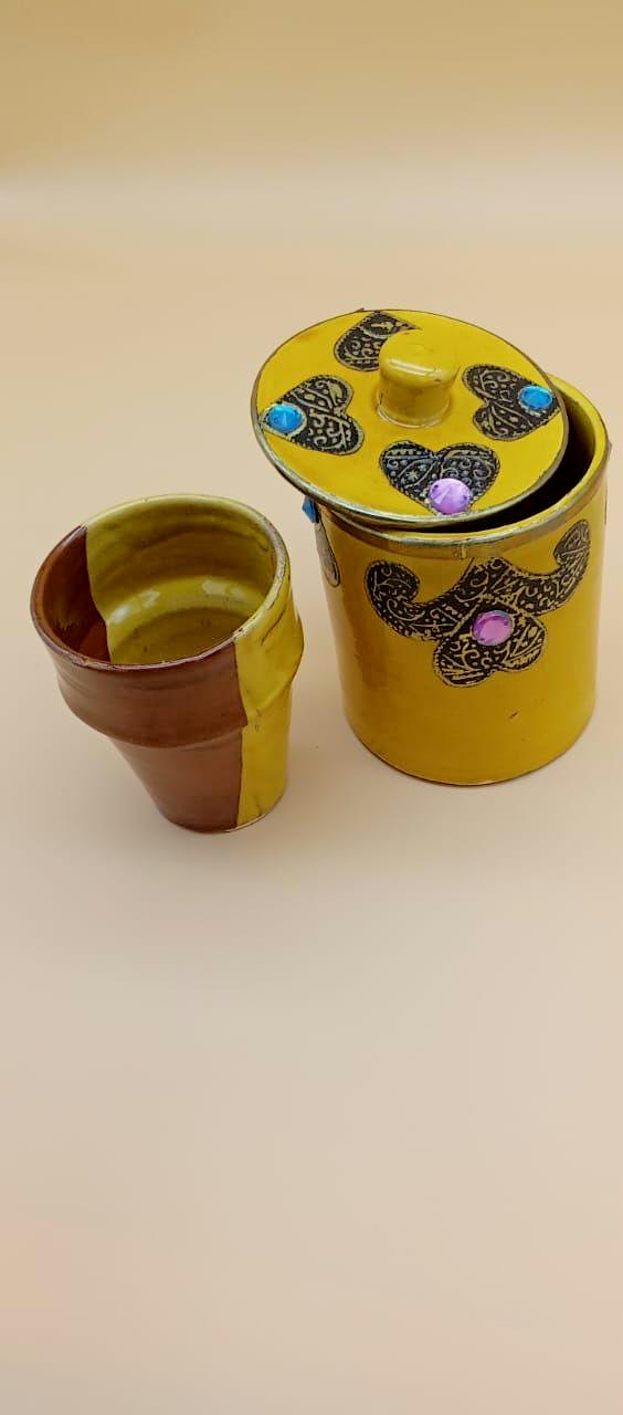Moroccan Ceramic Handcrafted Pot with Matching Cup - Handmade, Traditional Decor
