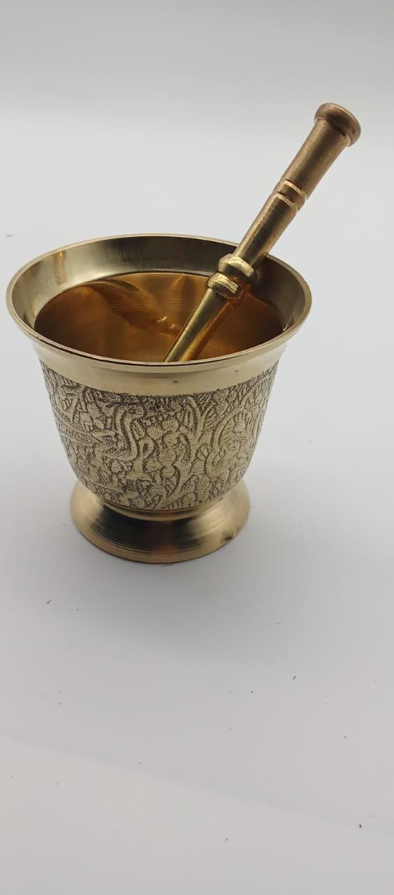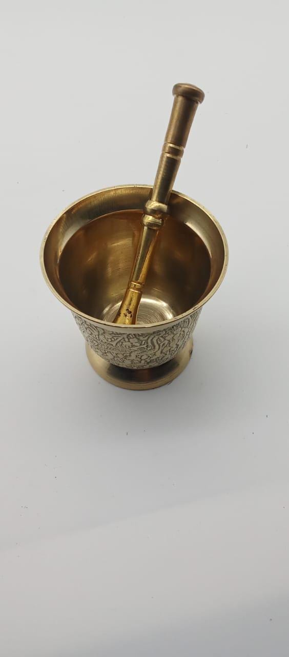 Bring a touch of Moroccan craftsmanship to your home with this handmade brass mortar and pestle. Beautifully engraved with oriental patterns, it’s ideal for grinding spices, herbs, or coffee – or as a unique decorative piece for your kitchen or living room.